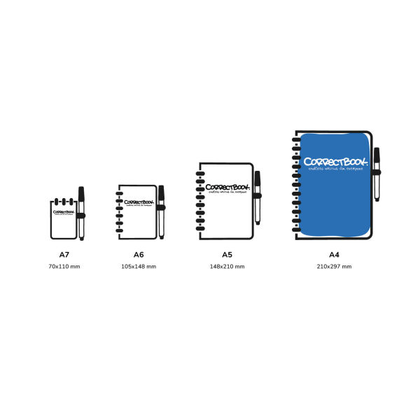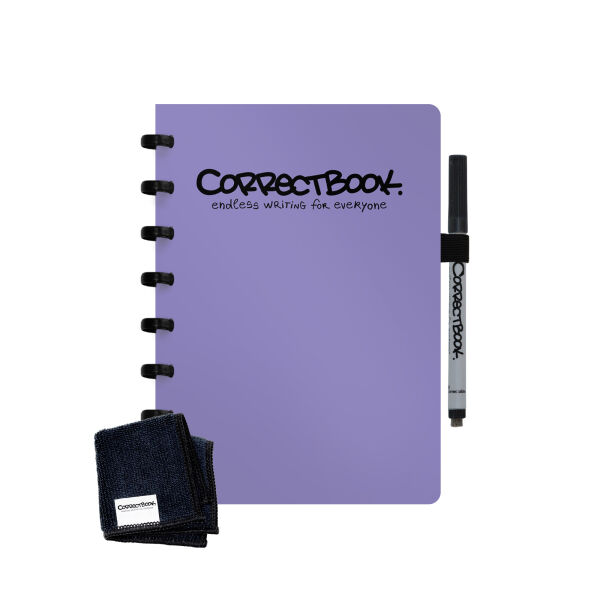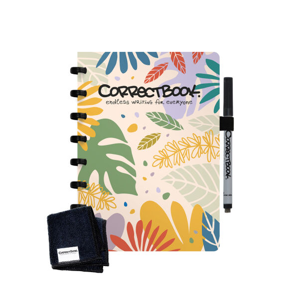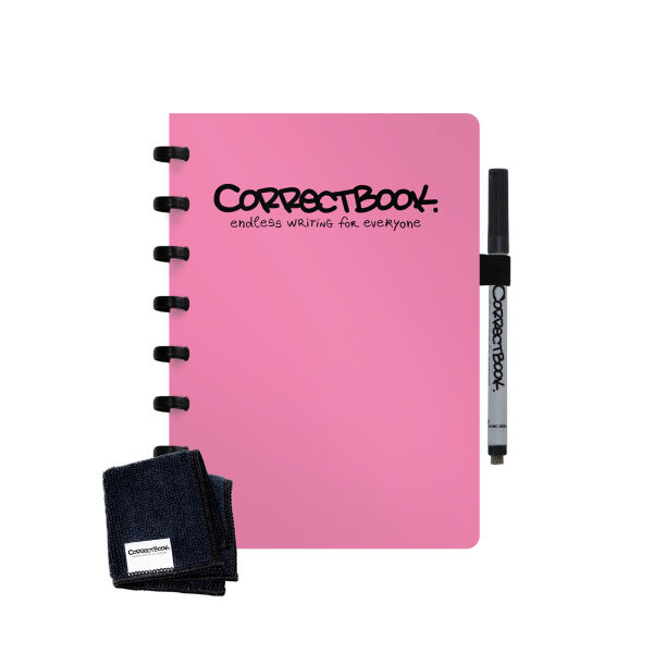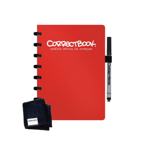 Dit duurzame uitwisbare notitieboek A5 Original Softcover zorgt ervoor dat jij veel papier bespaart, waardoor je een positieve impact hebt op het milieu. Ook zorgt Correctbook dat je met je aankoop bijdraagt aan een oplossing voor analfabetisme. Met de aankoop van elk Correctbook voorzien wij kinderen in ontwikkelingsgebieden van ditzelfde uitwisbare schrijfmateriaal. Doe je mee? Samen maken wij schrijven toegankelijk voor iedereen op de wereld. Mogelijkheden: De omslag kan volledig worden gepersonaliseerd (voor- en achterkant en beide binnenzijden), mits het Correctbook logo (100% zwart of 100% wit) klein onderin op de voorkant van de omslag blijft staan en “The story of Correctbook” – eventueel in eigen huisstijl – aan de binnenkant van de omslag. A5 Formaat (21 cm x 14,8 cm) Correctbook Unbind & Click Ringband 20 Correctbook Core Uitwisbare Bladen (40 Bladzijden, gelinieerd of blanco) 1 Zwarte Uitwisbare Correctbook Pen (0.6 mm) 1 Correctbook Wisdoekje Ondersteunende Correctbook Scan App Oneindig Schrijf- & Tekenplezier