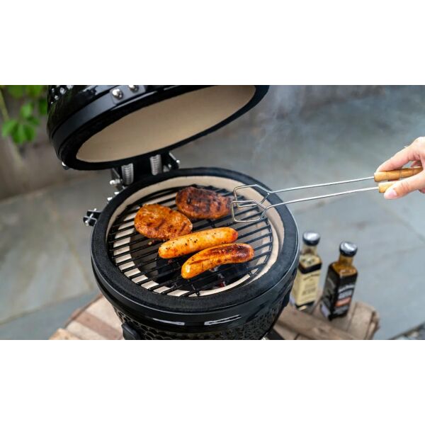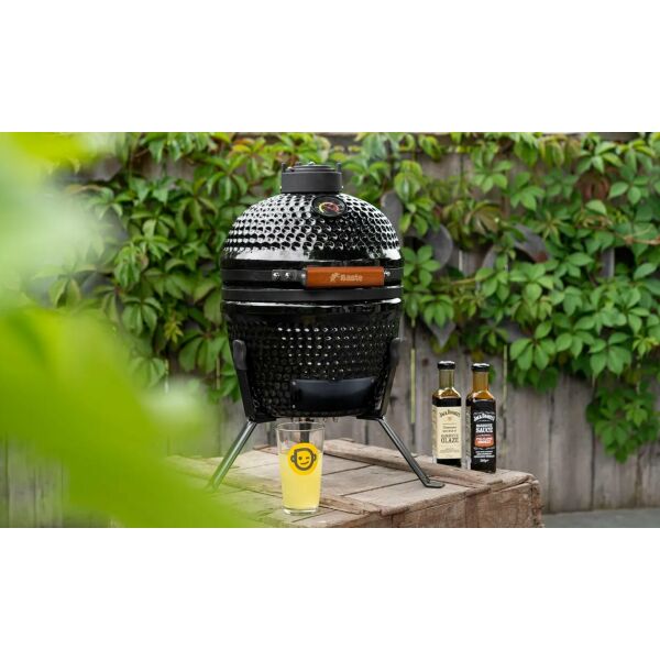 Deze 13 inch Kamado BBQ is perfect voor de beginnende barbecueër! De complete keramische barbecue is vriendelijk geprijsd en dat maakt hem ideaal om uit te proberen of zo'n keramische barbecue eigenlijk wel iets voor jou is. Het kookoppervlak heeft een diameter van 27 cm en is daarmee geschikt om 4 heerlijke hamburgers per keer te bereiden. Door zijn compacte formaat is hij ook zeer geschikt voor een kleine tuin of een balkon. Het keramische materiaal zorgt voor optimale isolatie waardoor warmte goed in de barbecue blijft. De Kamado BBQ plaats je gewoon op een verhoging of een daarvoor gemaakte werktafel, zodat je kunt grillen op de ideale werkhoogte.LET OP: Kamado wordt in een aparte doos geleverd!
