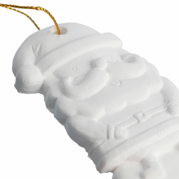 PS schilderpakket kerstman met één gipsfiguur, drie kleuren acrylverf en één penseel. Voorzien van een gaatje met polyestertouw om op te hangen als kerstboomversiering. Geschatte speeltijd: 30–60 minuten. Per stuk verpakt.
